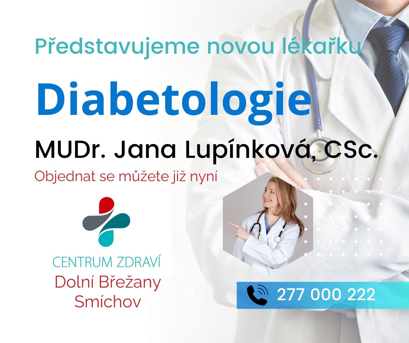 Rádi bychom vám představili novou lékařku na Diabetologii jménem MUDr. Jana Lupínková CSc.